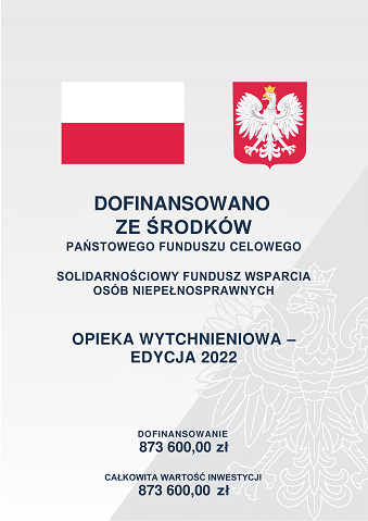 „Sfinansowano ze środków pochodzących z Solidarnościowego Funduszu Wsparcia Osób Niepełnosprawnych „Opieka wytchnieniowa – edycja 2022”