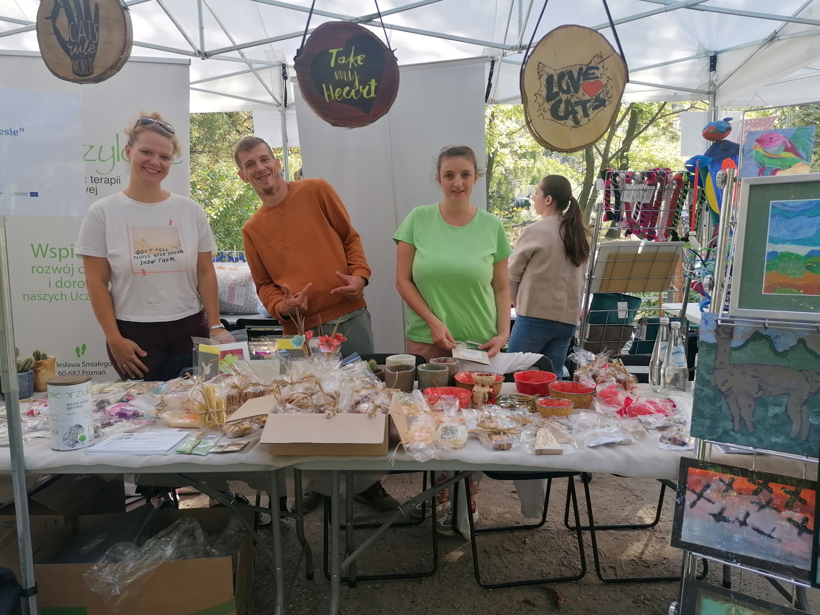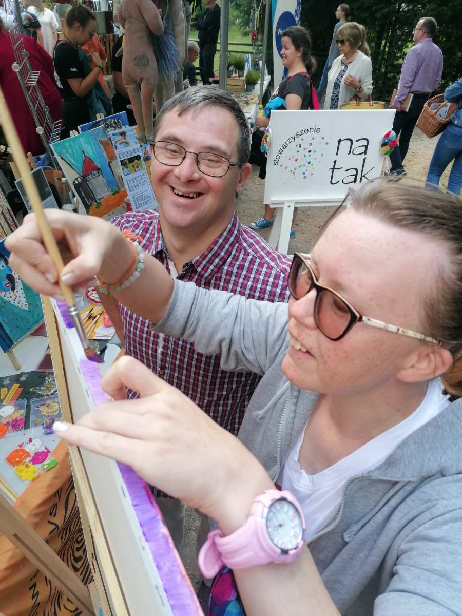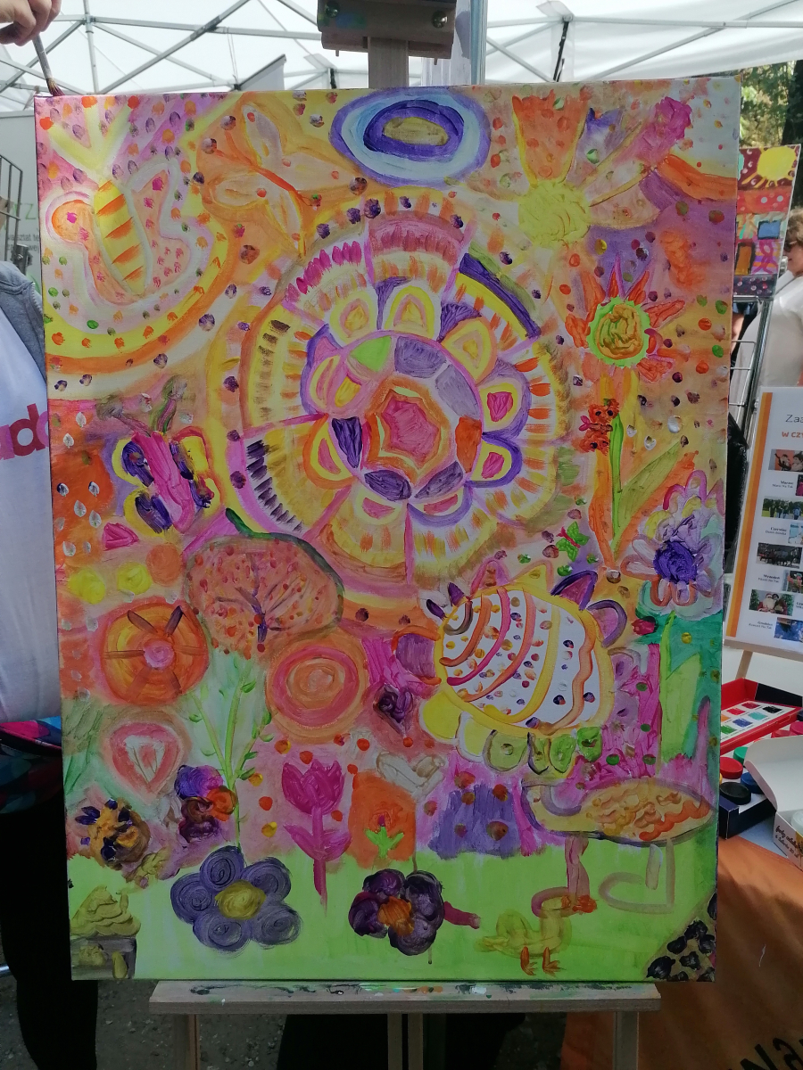 Była to świetna okazja, aby zapoznać się z różnorodnymi inicjatywami jakie mają miejsc w naszym mieście. Z taj okazji również my braliśmy w tym udział. Wraz z Taka Mydlarnia, WTZ Krzemień i WTZ Przylesie przygotowane zostały stoiska na których można było zakupić wytwory z placówek oraz zapoznać się z ich działalnością. Na naszym stoisku można było również wspólnie  z uczestnikami Galerii Tak namalować obraz. Poniżej możecie zobaczyć jakie dzieła udało nam się stworzyć.