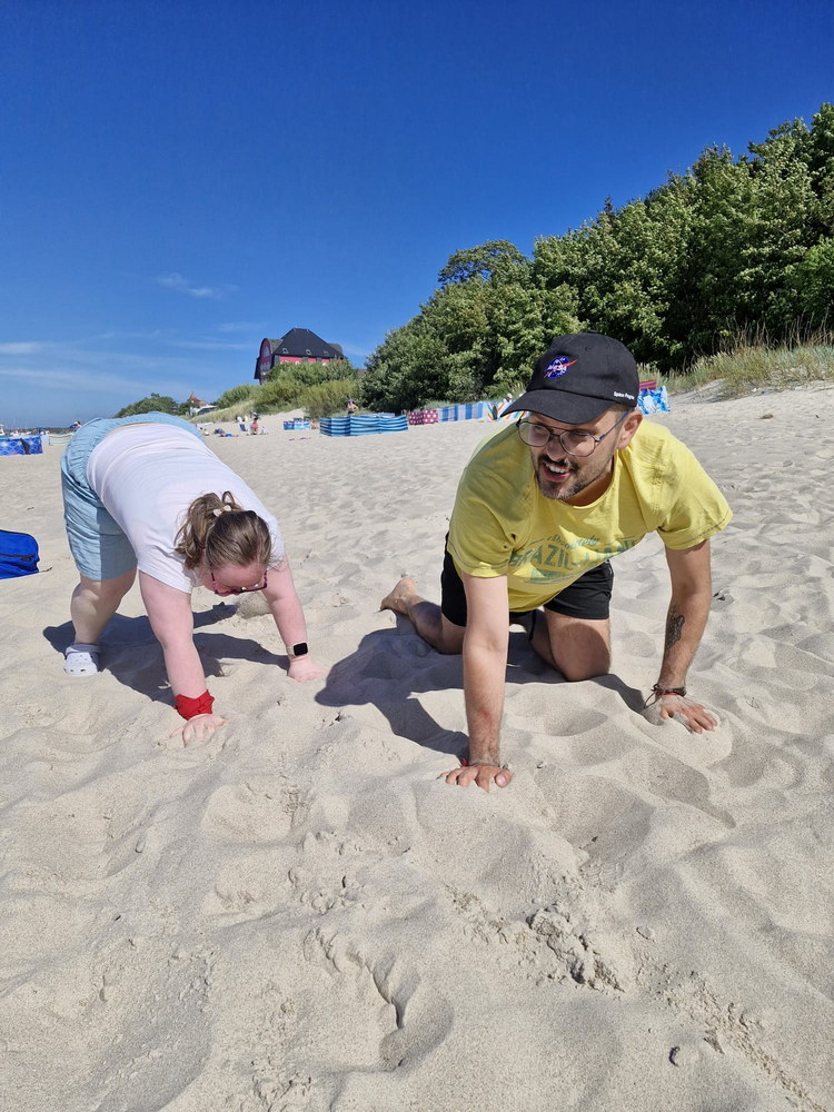Czas wypełniają nie tylko relaksem, ale też warsztatami plastycznymi, zajęciami sportowymi i oczywiście codzienną porcją gier, zabaw i tańców na plaży.
