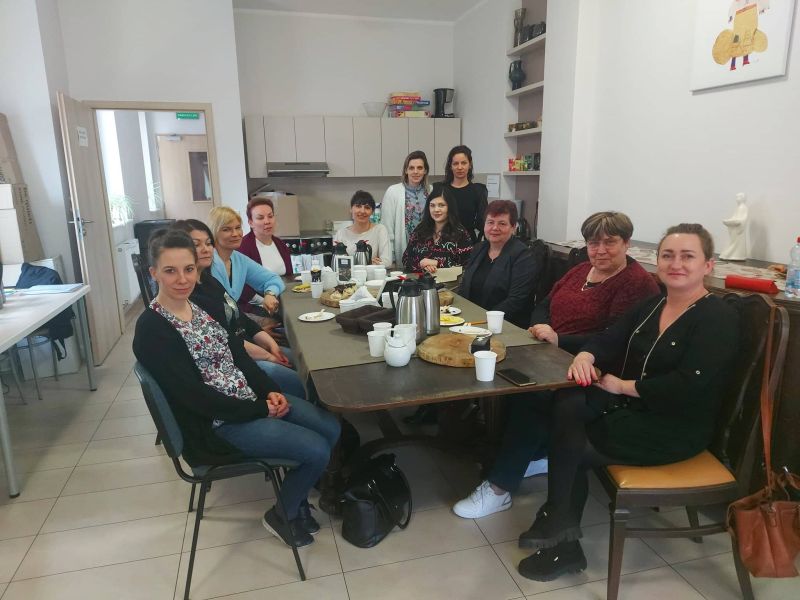 Dzięki współpracy z Regionalnym Ośrodkiem Polityki Społecznej i jego przedstawiciela Macieja Patulaka, odwiedziły Stowarzyszenie przemiłe panie z OPS-ów, które na co dzień pomagają swoim podopiecznym. W spotkaniu studyjnym , które prowadziły pełniąca obowiązki Dyrektora Ewa Bielawa oraz współtworząca Dom krótkiego pobytu Poranek Justyna Manyś opisano strukturę działalności STN. Dzięki spotkaniu nasi goście mogli dowiedzieć się jak działają wszystkie placówki SNT.