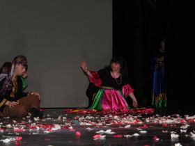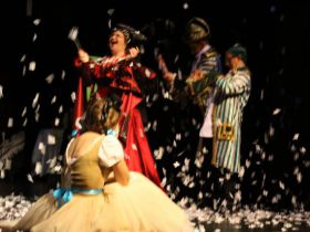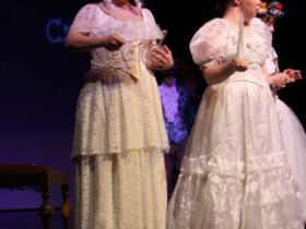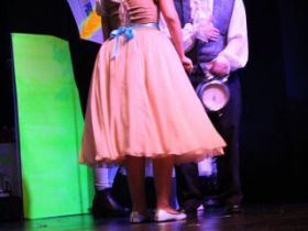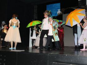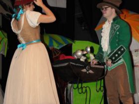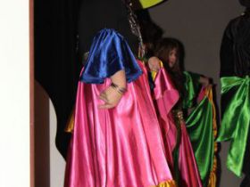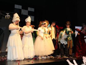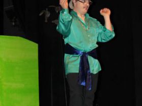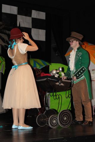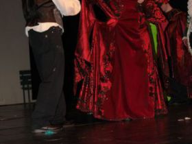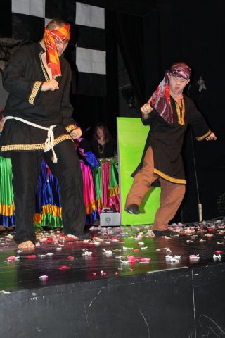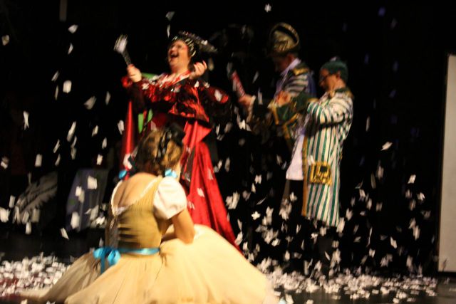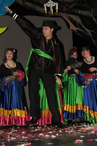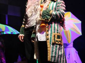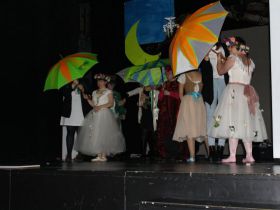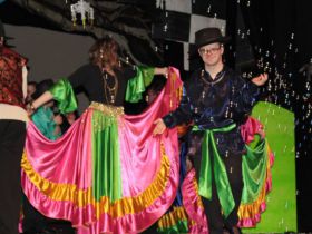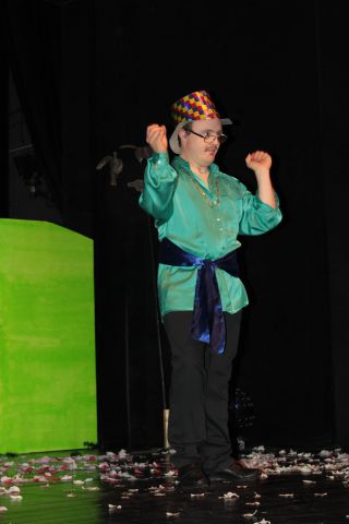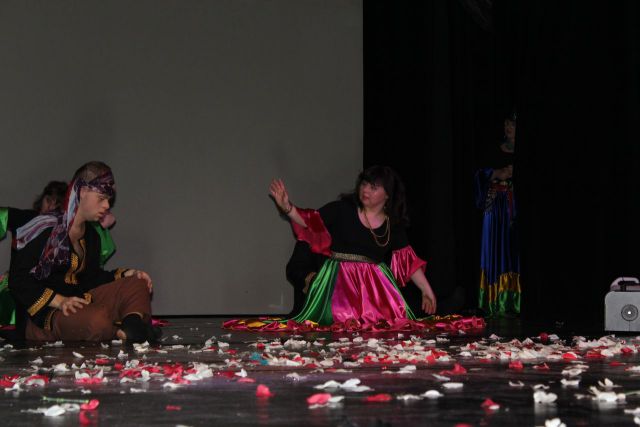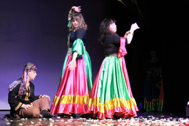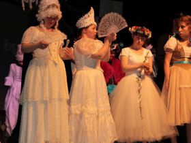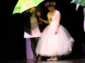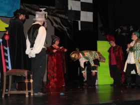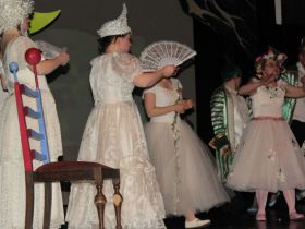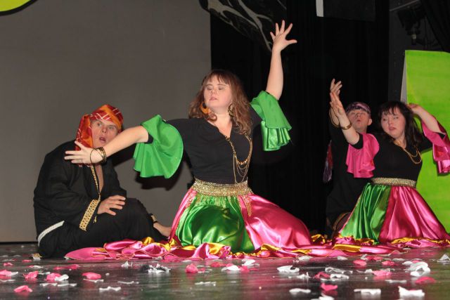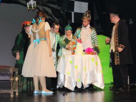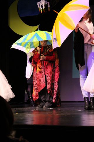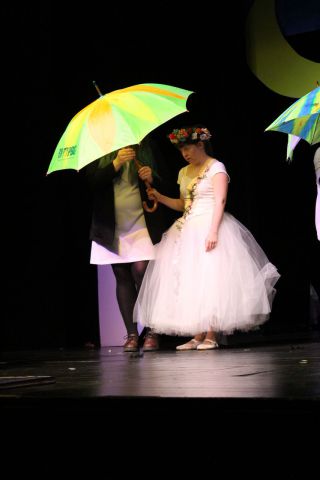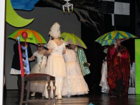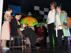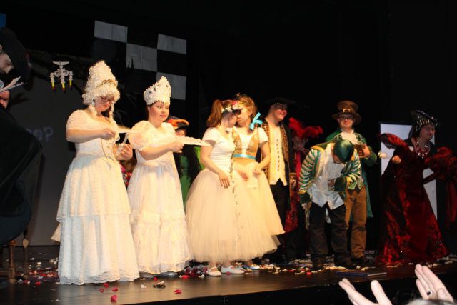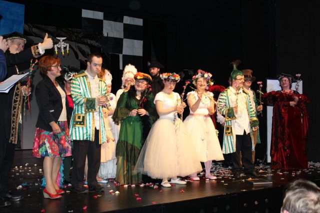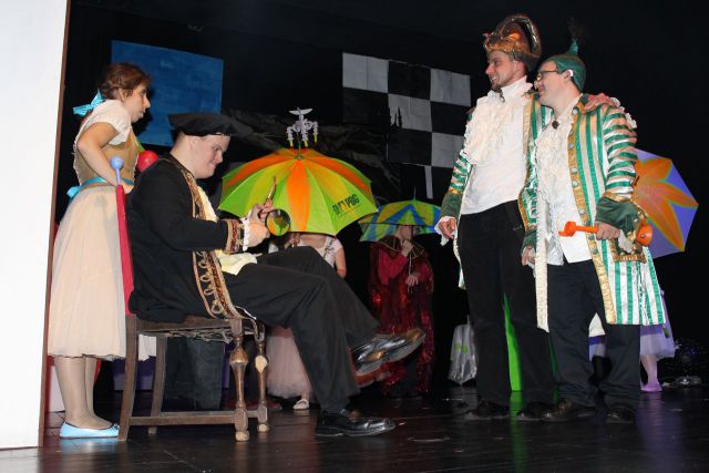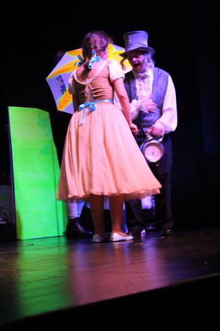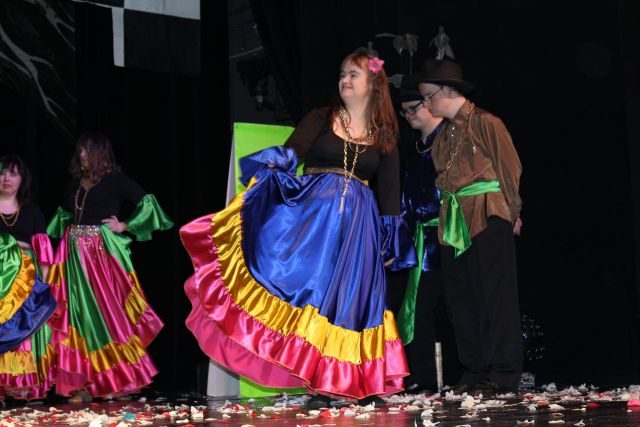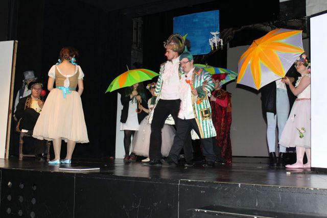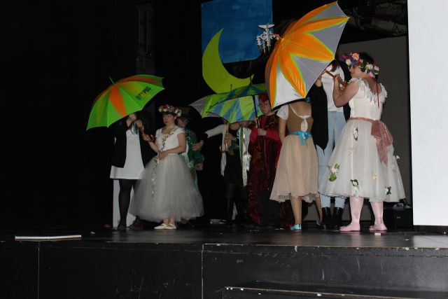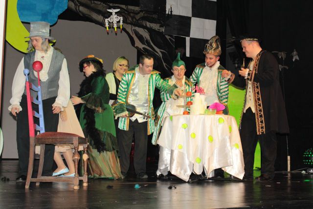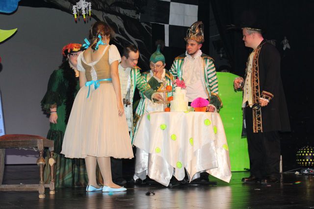 Spotkanie cieszyło się tak dużym zainteresowaniem, że tłoczno zaczęło się robić już dwadzieścia minut przed rozpoczęciem wydarzenia. Dla niektórych zabrakło nawet miejsc siedzących, co świadczy tylko o tym, że przyjaciół zaproszonych do wspólnego świętowania przybywa z każdym kolejnym spotkaniem. Zebranych przywitała Hanna Muzsik, kierująca Zespołem Tanecznym „Promyk” (powstałego w 2008 roku) oraz Grupą Teatralną „Flesz”, działającą od 2010 roku. To właśnie grupa teatralna rozpoczęła część artystyczną od przedstawienia „Po drugiej stronie”, opartego na motywach z „Alicji w Krainie Czarów” Lewisa Carolla. Scena zaroiła się od kolorów, efektów oraz wartkiej akcji. Aktorzy przedstawili przejmującą historię głównej bohaterki, która doświadcza odrzucenia ze strony mieszkańców tajemniczej krainy. Pojawiły się praktycznie wszystkie, znane już postaci: od spóźnionego królika, poprzez Królową Kier, aż po Kapelusznika. Zgrabnie ujęta całość trzymała w napięciu do samego końca.