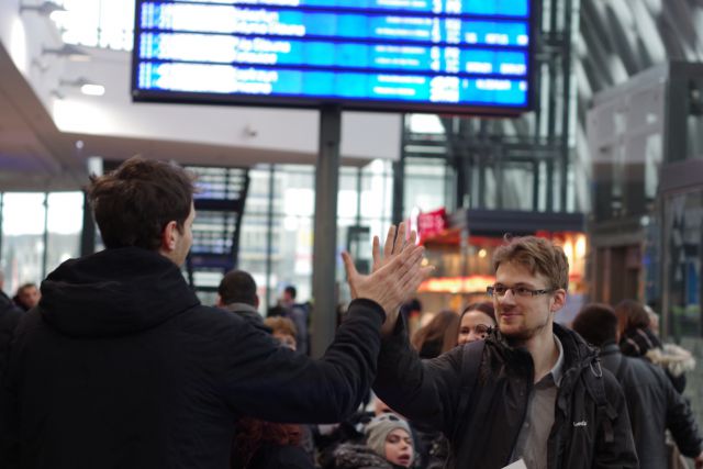 Trzeci raz przybijaliśmy piątki z pasażerami na dworcu PKP w Poznaniu.